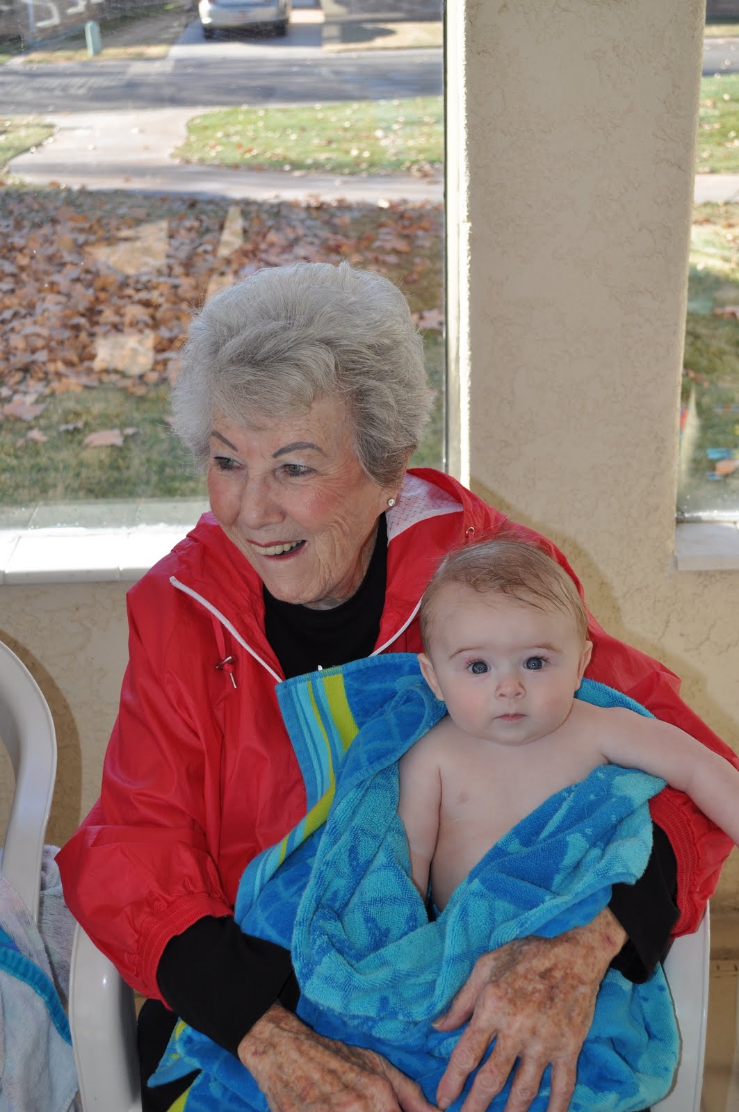 Snuggle time with Grandma Norma after swimming :)